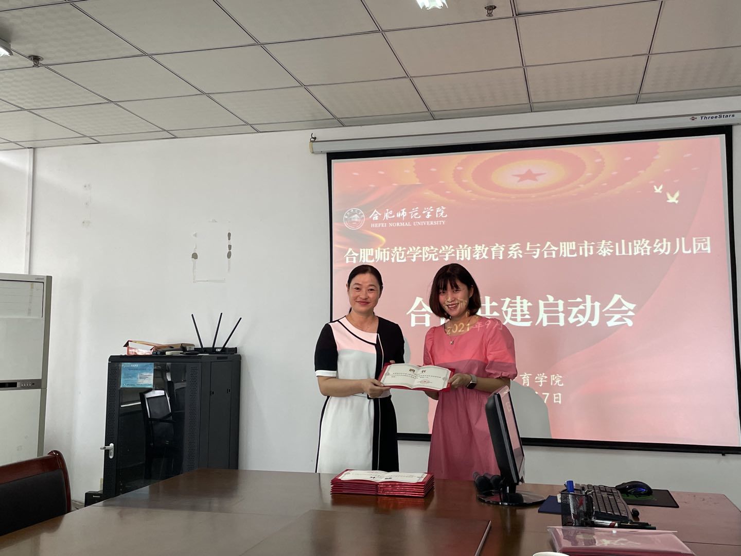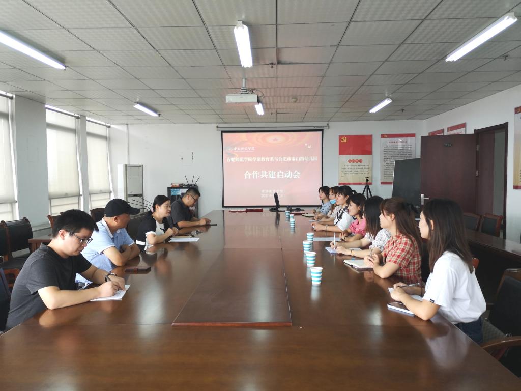 本网讯 9月7日上午,太阳成集团tyc122cc入口教师教育学院学前教育系与合肥市泰山路幼儿园合作共建启动会在行知楼710举行。教师教育学院党委书记穆娟、副院长闫龙、学前系学科带头人胡连峰、学前系教师李辉,合肥市泰山路幼儿园园长华琳琳,教学主任徐晓,后勤主任秦蓉和骨干教师等参加启动会。