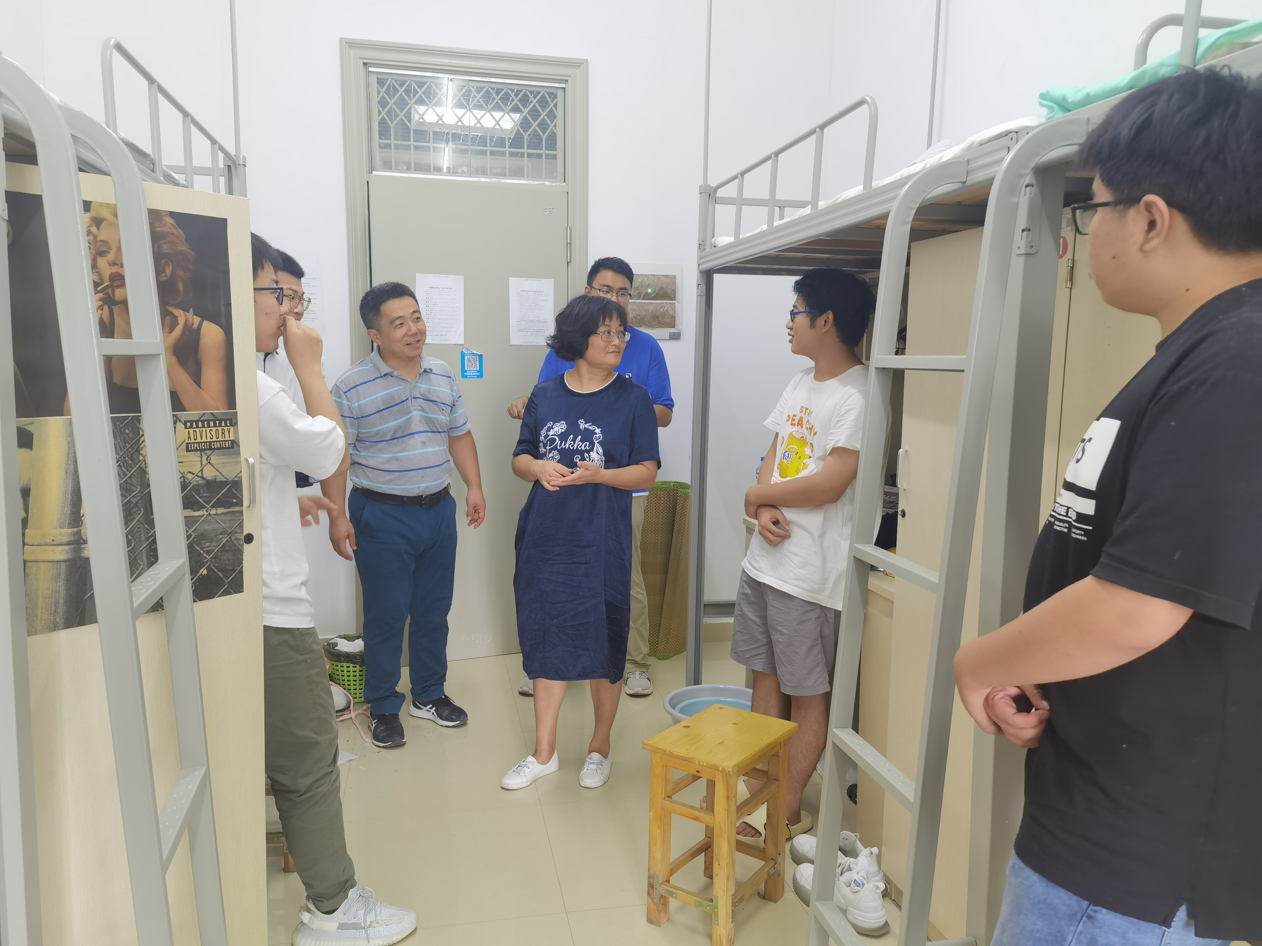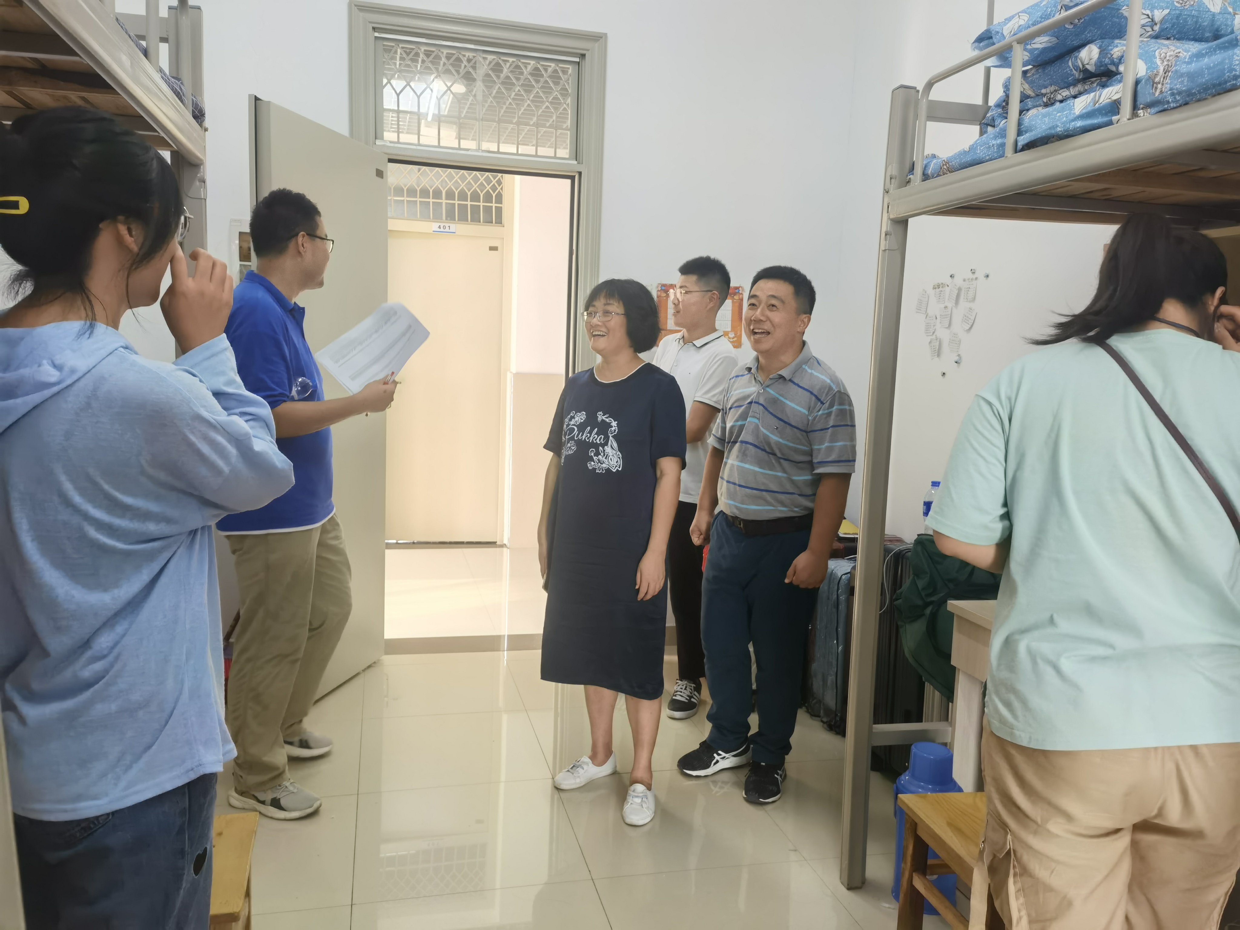 在新生宿舍,学院领导和老师详细地了解新生们的生源地、专业,耐心细致地回答了同学们的诸多疑问,与大家亲切交流了入校的体会感受。唐洁叮嘱同学们要尽快适应大学的学习与生活,锻炼独立自主的能力,积极融入集体生活。吴震提醒大家要积极主动与老师沟通交流,多向学长请教,尽快熟悉校园环境,做好个人安全防护,并温馨提示同学们及时把学校、宿舍情况拍照发给家长,让亲人放心。