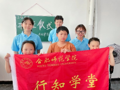 本网讯 7月20日,外国语学院三味书屋行知学堂在太和县三塔镇正式开班,团结村村委会书记赵登升、来自外国语学院、文学院的3名“小先生”、3名小学员以及学生家长参加此次开班仪式。