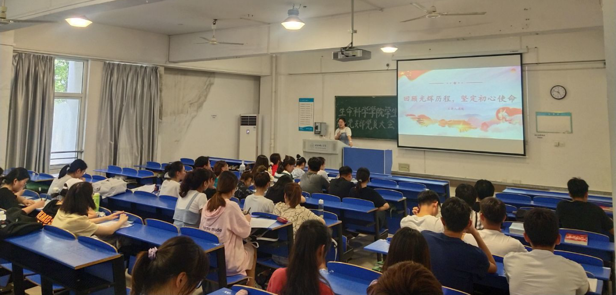 本网讯 奋斗百年路,启航新征程。为迎接中国共产党建党100周年,歌颂党的伟大成就,进一步加强党员党性修养,生命科学学院学生第一党支部于6月30日下午在逸夫楼101教室开展了主题为《回顾百年光辉历程,坚定初心使命》的专题党课活动,本次党课由党支部书记高欢主讲,该支部全体党员参加。