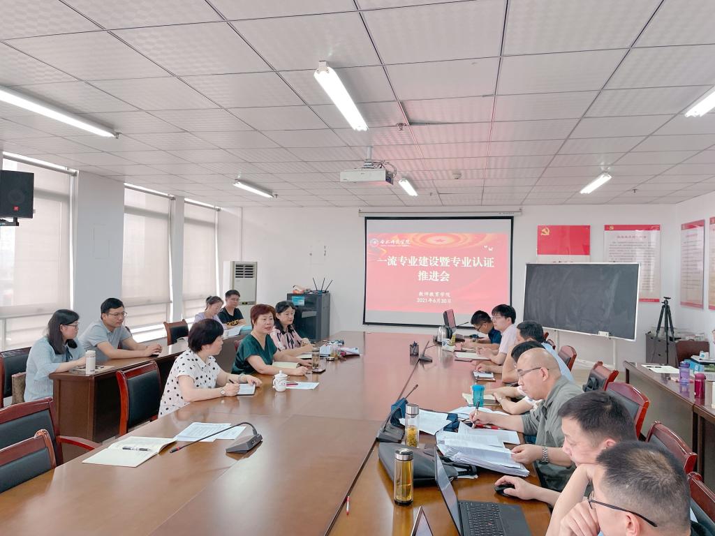 本网讯 6月30日上午,教师教育学院在锦绣校区行知楼710会议室举办一流专业建设暨师范专业认证推进会。会议由院长李群主持,党委书记穆娟、副院长闫龙出席会议,特邀教务处处长胡昂和化学与化学工程学院专业负责人凌波老师参会指导,学院全体教师参加了会议。