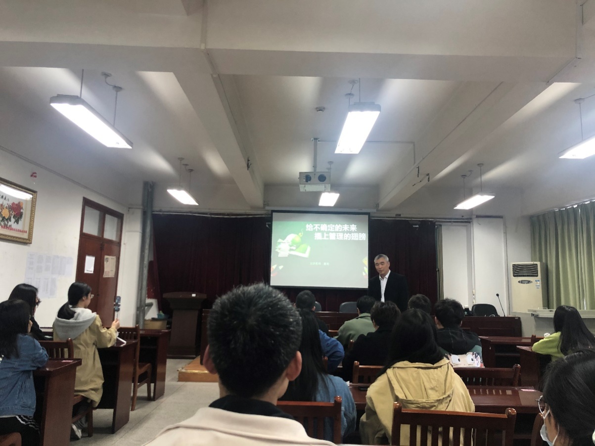 本网讯 为了让应用心理学专业学生对现有时间和未来就业方向进行更好的管理和把握,4月21日下午,合肥明睿数据服务有限公司创始人兼项目管理高级工程师霍湘应邀在三孝口校区西干训教室做“给不确定的未来插上管理的翅膀”专题讲座。教师教育学院17级、18级应用心理学班68人聆听了讲座。