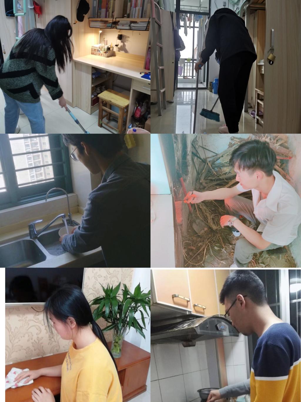 我院2019级和2020级学生每天拿着劳动工具来到教学楼、实验室、图书馆等地,扫地、拖地,劳动的身影在春日暖阳下的校园里穿梭。通过本次劳动教育,学生更加注重宿舍的卫生,每天将宿舍整理干净,让大家生活在一个舒适的校园环境中。此外,同学们还利用节假日回家的时间帮助父母干活,在劳动中学会助人,懂得感恩。