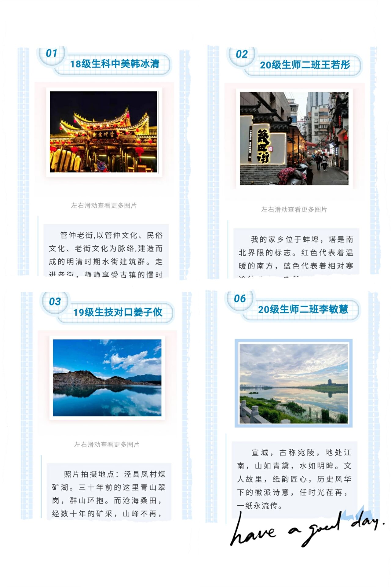 家乡一角,触碰内心最深处的柔情。姜子攸同学晒出了家乡的“煤矿湖”,一隅湖水不仅是一道美景,它见证了时代的变迁和县城的发展;韩冰清同学分享了家乡的“管仲老街”,管仲老街的建筑风格为清明时期的古商业街和古合院群落,既展现了中国传统文化的博大精深,也呈现出小镇群众积极向上的精神面貌。
