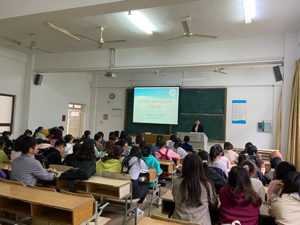 本网讯 为引导学生树立正确的就业观与择业观,进一步了解就业形势、明确就业方向,充分做好2021届毕业生就业工作,积极应对新冠肺炎疫情给就业工作带来的新情况新挑战,10月20日、21日下午,学院各毕业班以主题班会的形式组织开展了毕业生就业工作会,会议由各毕业班辅导员主持召开。