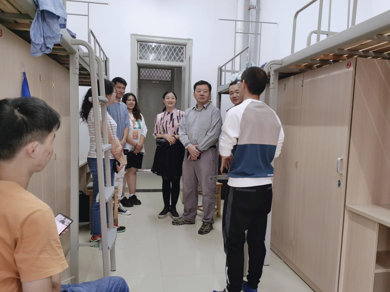 下午穆娟、王东明、分团委书记王磊以及2020级辅导员唐淼赴5栋、6栋新生宿舍走访,对新生的到来表示热烈欢迎。穆娟像妈妈一样和新生唠起了家常,耐心细致地回答了学生的问题,关注新生的学业问题,嘱咐新生要尽快适应大学生活。王东明叮嘱新生在遇到自身难以解决的困难时,要及时主动与老师沟通,在校园良好的学习氛围中汲取更多知识,提升自我。
