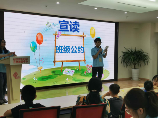 本网讯 7月20日上午,计算机学院万慈社区“小趣芽”行知学堂开班仪式在万慈社区党群服务中心举行,来自计算机学院和外国语学院的6名“小先生”与13名小学员共同参加了开班仪式。