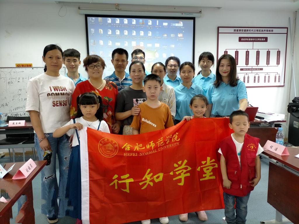本网讯 7月13日,中华公益小记者行知学堂在红旗社区顺利开班。合肥市庐阳区德泰和健康心理公益文化发展中心程洁,艺术传媒学院分团委书记戴玉佩,来自艺术传媒学院、外国语学院、教师教育学院的4名小先生、6名中华公益小记者及家长共同参加了开班仪式。仪式由合肥市庐阳区德泰和健康心理公益文化发展中心程洁主持。