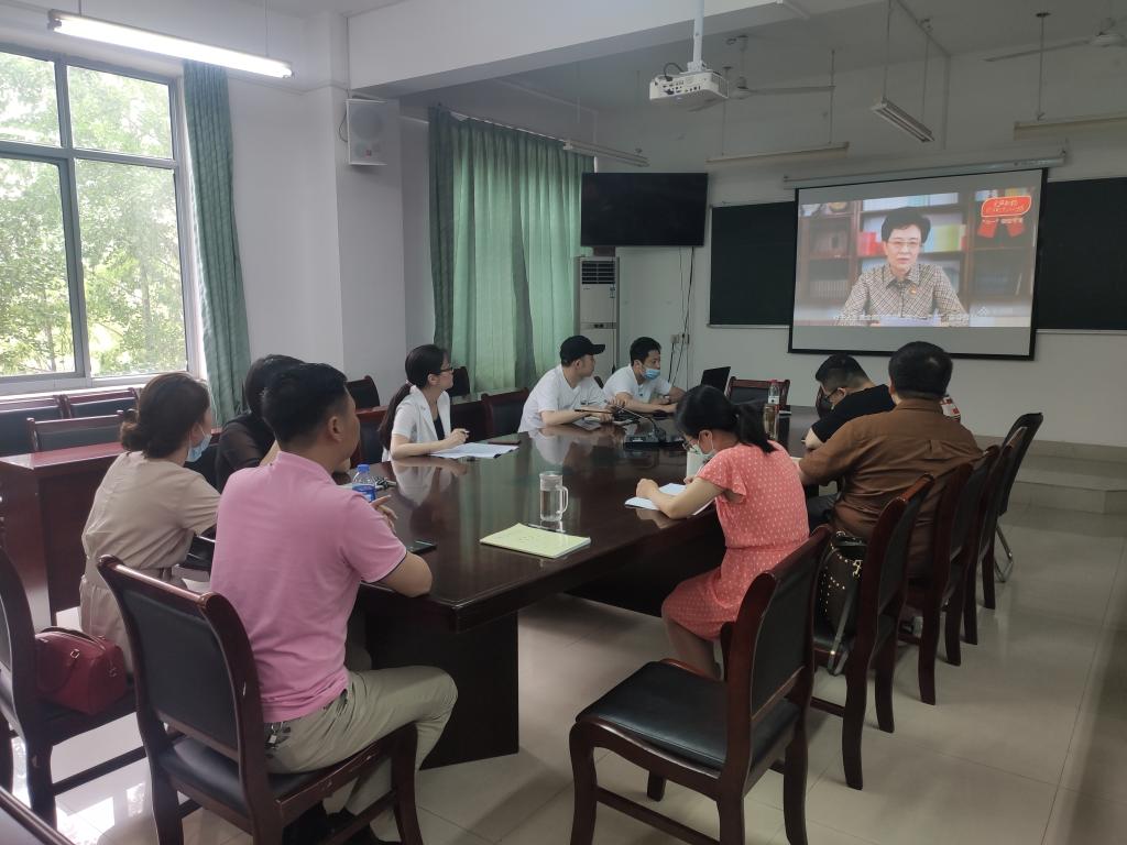 中国人民大学、复旦大学、西安交通大学和北京科技大学4所高校从为人民服务、马克思主义、西迁精神、一带一路等方面,联合奉献了一场有高度、有深度、有温度的思想政治教育课。艺术传媒学院各党支部书记、总支秘书、辅导员、行政人员在艺术楼202观看直播后,纷纷对党的99周岁生日献上祝福,并通过分享学习体会、开展集体交流研讨等方式,进一步深化了本次学习的针对性和实效性。