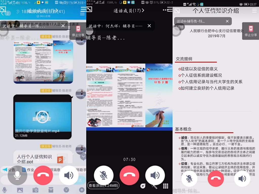 一是开展线上主题班会。各年级班级通过QQ群、微信群直播、腾讯会议等召开线上主题班会,班会围绕感恩诚信主题进行了助学贷款宣传片观看、宣传手册集体学习、资助政策“两节课”宣讲以及诚信失信大讨论等内容,提高了同学们对诚信感恩重要性的认识,时刻提醒自己要加强修养、身体力行,争做讲诚信懂感恩的人。