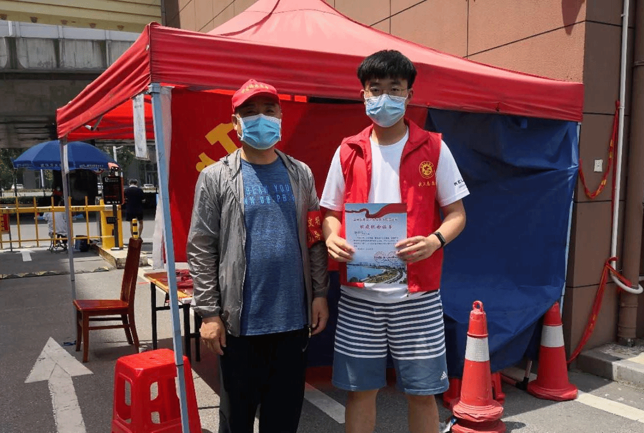 韩佳骁同学用自己的勇毅言行,践行了“奉献、有爱、互助、进步”的志愿者精神,展现了合师体育学子的蓬勃朝气与责任担当,为当地社区战胜疫情增添了信心和力量。