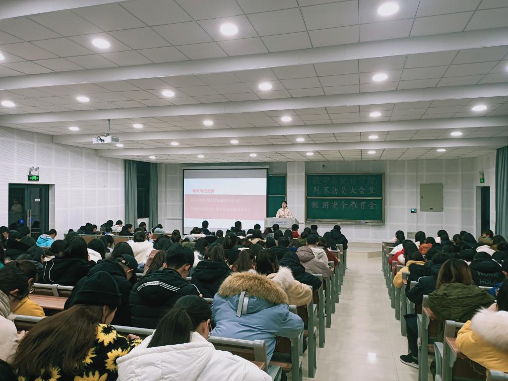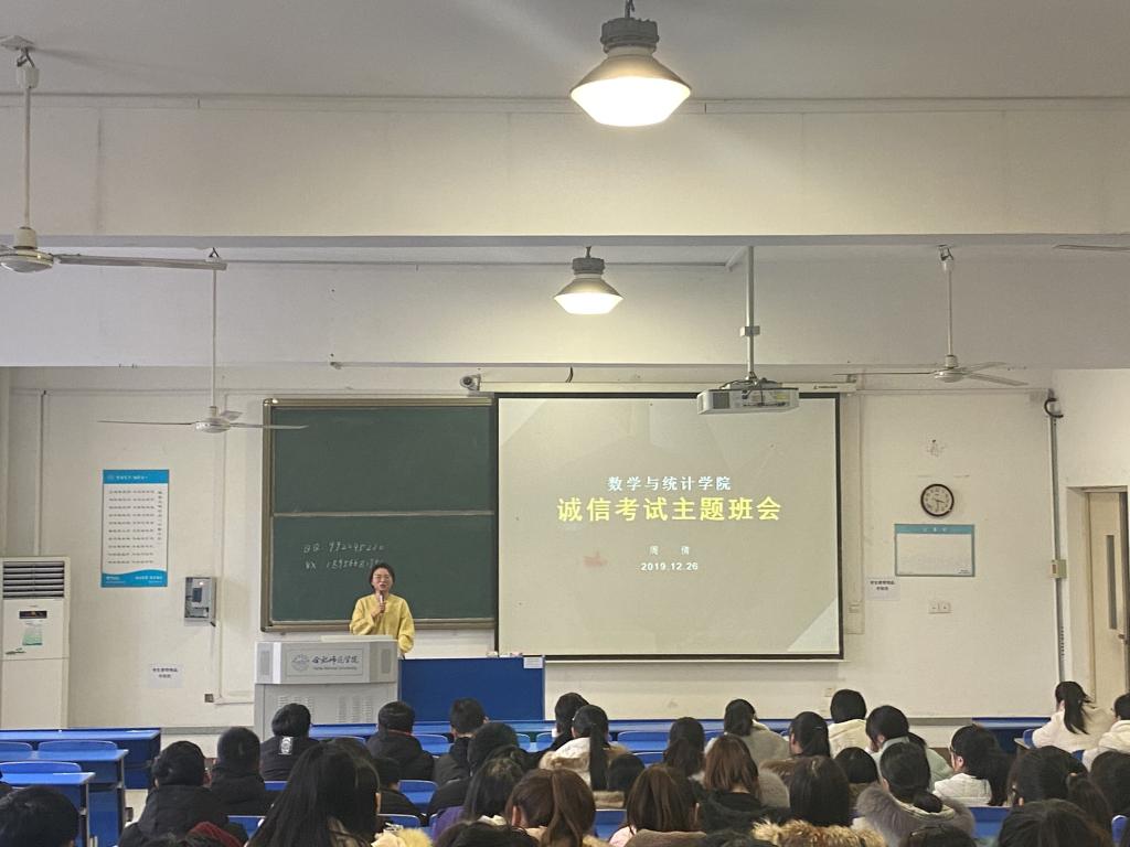 数学与统计学院高度重视期末考试诚信教育、假期离校安全教育等工作,强化责任,落实任务,不留隐患,加强学生诚信品德教育,保障同学们的生命和财产安全。(数学与统计学院:周倩)