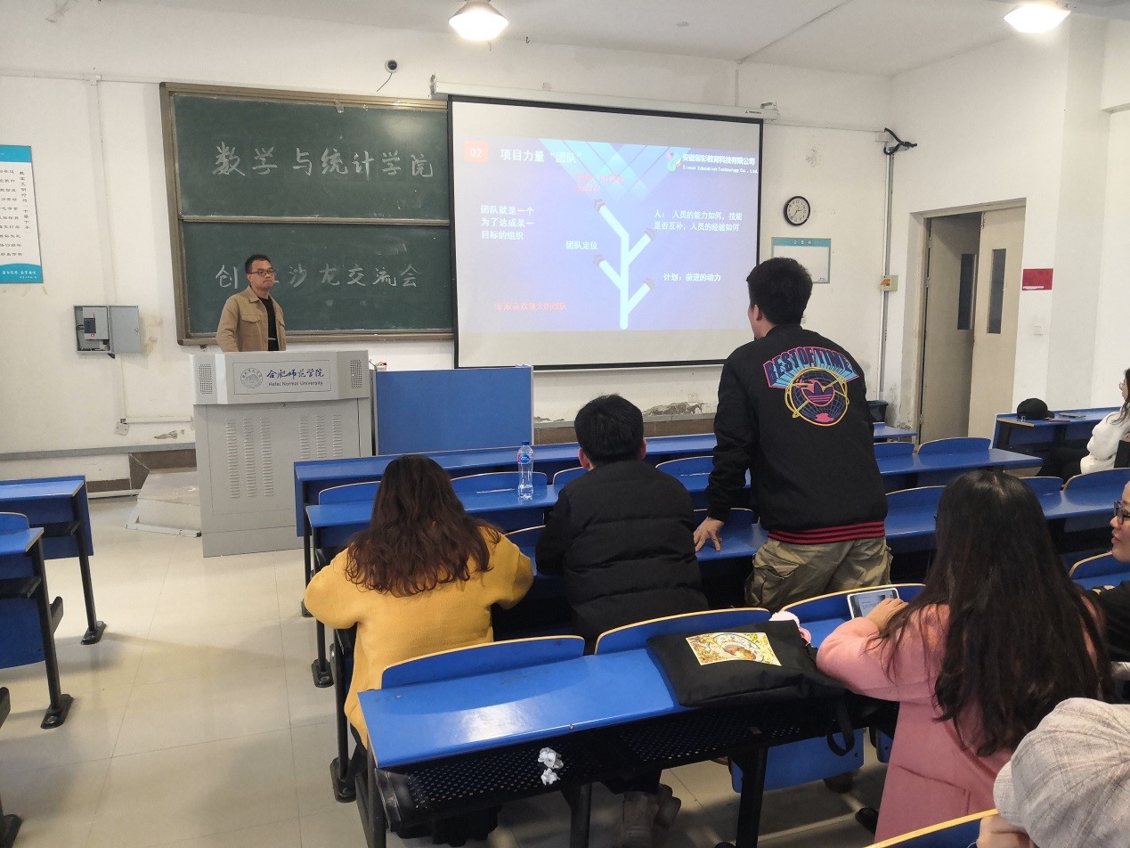 同时为了加强选手对省级创业类赛事的了解,拓宽创新创业视野,11月23日下午,“e创杯”第二场创新创业沙龙在逸夫楼A105教室举行。沙龙邀请了安徽省大学生创业大赛、互联网+大赛获奖选手、孵化基地入驻项目负责人程志强作为主讲嘉宾。程志强结合自身“幼儿多元智能课程研发与推广”的项目与选手们分享了创业项目选题、资源整合、项目策划撰写、参加省赛以及如何入驻校孵化基地等方面的经验。在提问环节,程志强与选手积极互动,对于大家的提问,都分别做出了详细的解答。选手们受益匪浅,对省级比赛细节有了更深程度的认识。