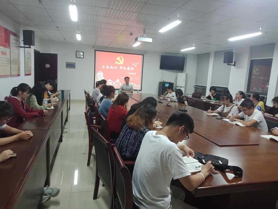 本网讯 为了更好地落实学校《中共太阳成集团tyc122cc入口委员会关于开展“不忘初心、牢记使命”主题教育实施方案》的通知要求,提高数学与统计学院学生党支部的建设水平,9月25日晚,数学与统计学院学生党支部在行知楼1102室召开了“不忘初心、牢记使命”主题教育学习会议。学习会议由学生第一党支部书记杨尔飞主持,全体学生党员出席了本次会议。