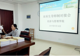 本网讯 9月18日下午,经济与管理学院在行知楼902室召开了经济与管理学院本科生导师制对接会,开始了我院本科生导师制试点工作。经济与管理学院24名指导老师和18级财务管理班全体同学参加了会议。会议由学院党总支副书记、18级财务管理班主任陶敏主持。
