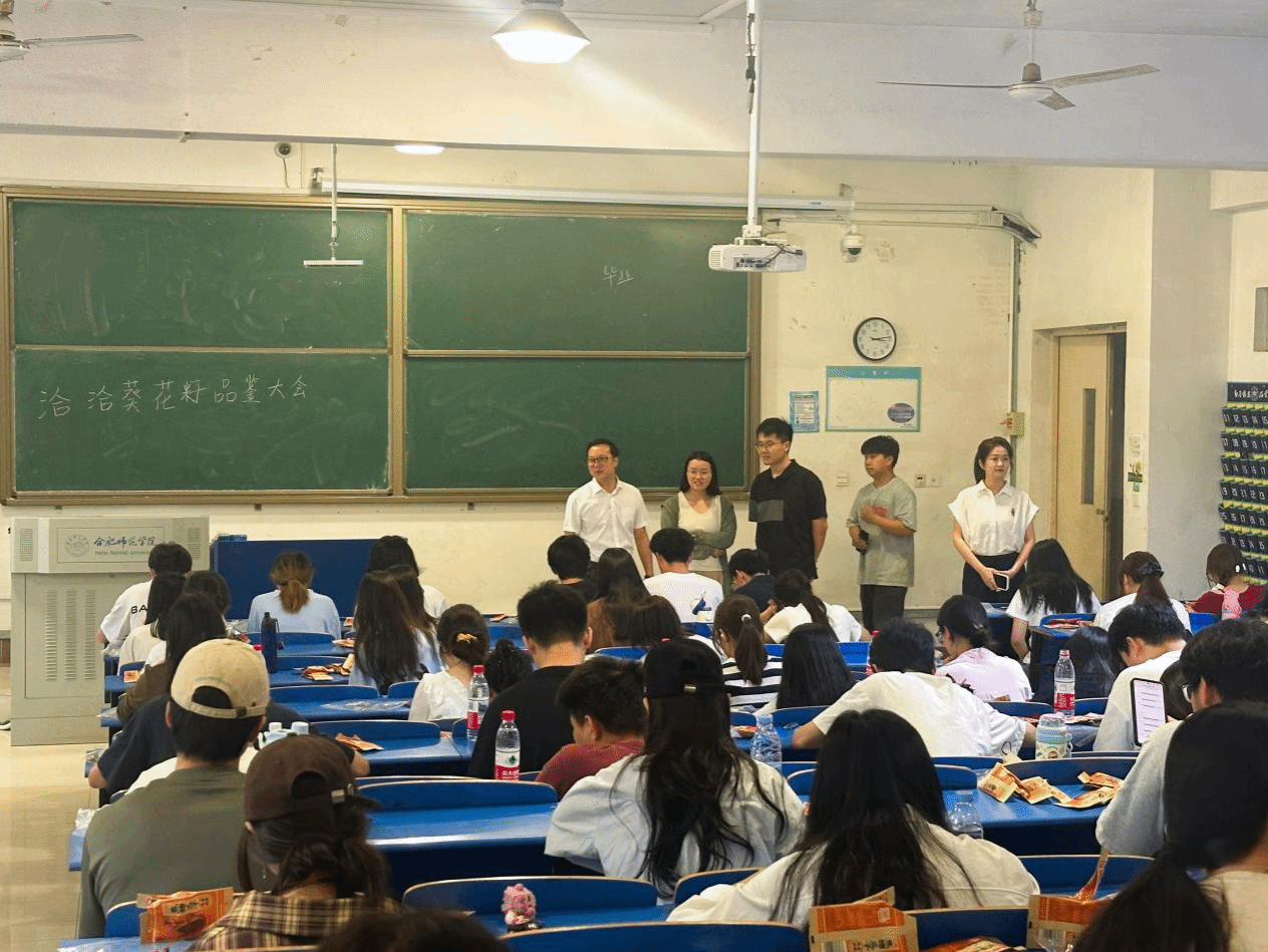 活动现场,洽洽食品带来了多款尚未上市的新品,涵盖坚果、烘焙、休闲零食等多个品类。师生们从食品风味、口感、包装设计等维度进行品鉴,并结合食品科学与营养学知识提出优化建议。同学们的反馈既展现了专业素养,也为企业提供了宝贵的市场洞察。