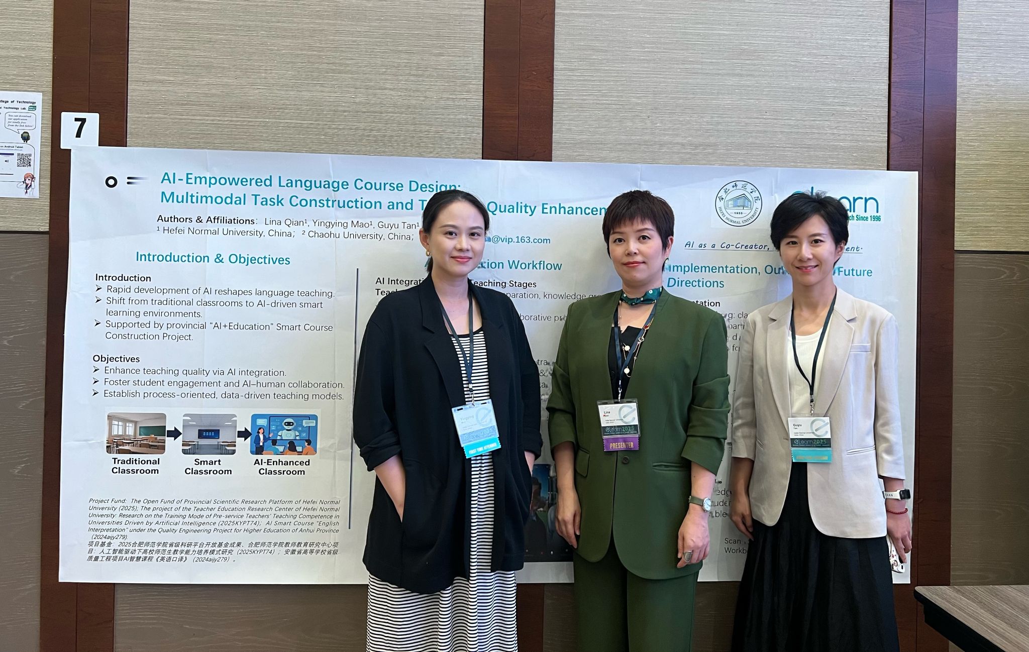 此次参会是我校外国语学院拓展国际学术交流、推动教育对外开放的重要举措之一。通过在高水平国际平台上展示教育技术创新成果,不仅提升了外国语学院的学术影响力,也为教师把握学科前沿、拓宽研究视野提供了宝贵机会。外国语学院将以此次会议为新的起点,持续推进人工智能等前沿科技与外语教学的深度融合,助力教育教学质量不断提升。(外国语学院 谈谷雨 茆莹莹)