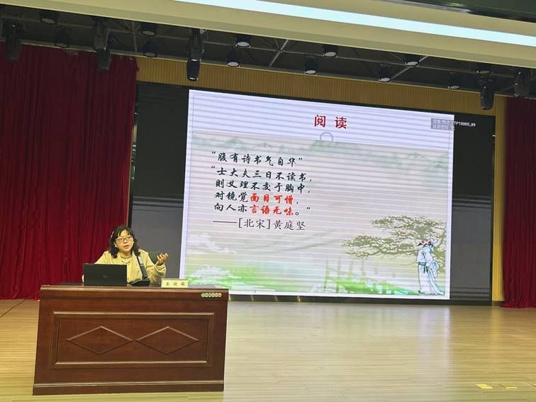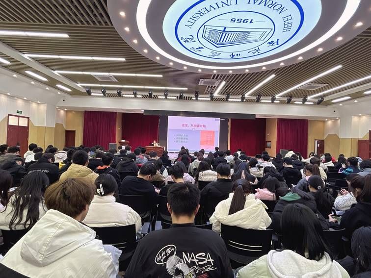 袁晓薇从阅读的力量、阅读的困境、阅读的方法三个方面,阐述了阅读可以增强人生的乐趣和学习的成效,改变人们的话语方式、思维走向、生命状态和幸福指数,让人深刻感受到阅读的力量,通过分析指出知识过溢、阅读障碍、泛娱乐化、数字技术是困扰现代人阅读的因素,强调要坚持经典阅读、培养持续性的阅读习惯、建立保障和激励机制、养成深阅读的习惯,才能让阅读更加有效和高效。她指出,伴随着思考和体验的阅读才是有效的,产生交流与共鸣的阅读才是愉快持久的,转化为能力的阅读才会有真正的收获。她勉励同学们,让阅读出于兴趣,成为习惯,“改变,从阅读开始;梦想,因阅读而生。”
