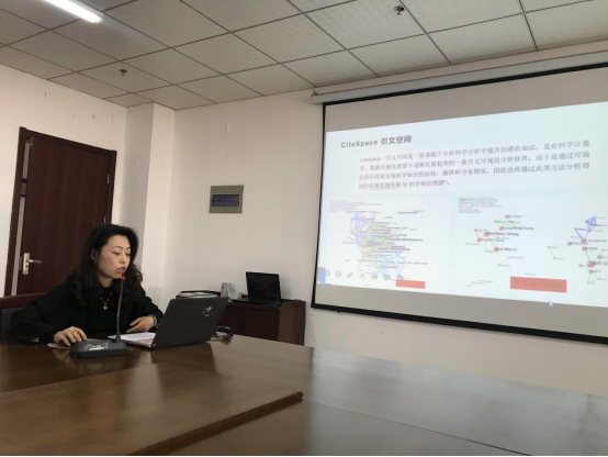 讲座围绕应用语言学文献检索和文献整理展开。王倩倩结合自身经验介绍了文献检索的思路和方法、常见的学术资源网站以及实用的文献整理软件。重点向研究生和老师们推荐了CiteSpace和EndNote两个软件,详细介绍了两个软件的功能,并现场演示了软件的使用方法。