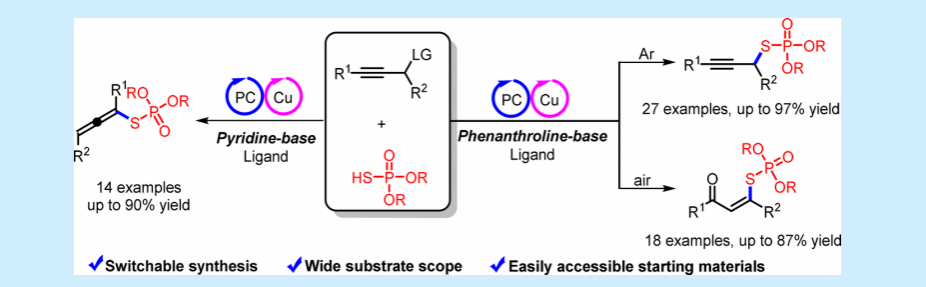 高效构建结构多样,活性丰富的硫磷酸酯类化合物是磷化学领域探索的热点方向。目前,该领域已实现了从简单到复杂结构的硫磷酸酯的构筑,然而富含丰富的不饱和位点的炔丙基及(联)烯基硫磷酸酯骨架的可控性合成尚未研究。