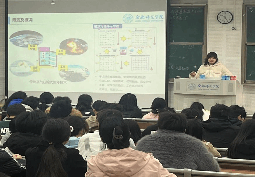 3月10日上午,物理与材料工程学院张雪倩、胡吉玉两位老师在滨湖校区博学楼A108教室做了两场“行知讲堂”学术报告,2023级新能源材料与器件专业全体学生聆听了报告。