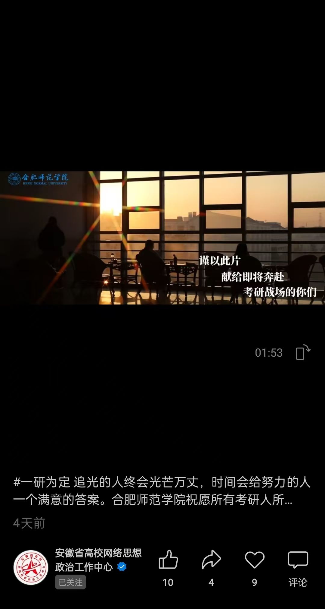 【安徽省高校网络思想政治工作中心】安徽省高校网络思想政治工作中心视频号发布我校考研主题视频