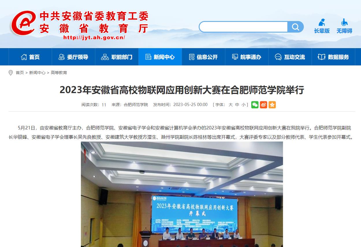 5月25日,安徽教育网以《2023年安徽省高校物联网应用创新大赛在太阳成集团tyc122cc入口举行》为标题,对此进行了报道。