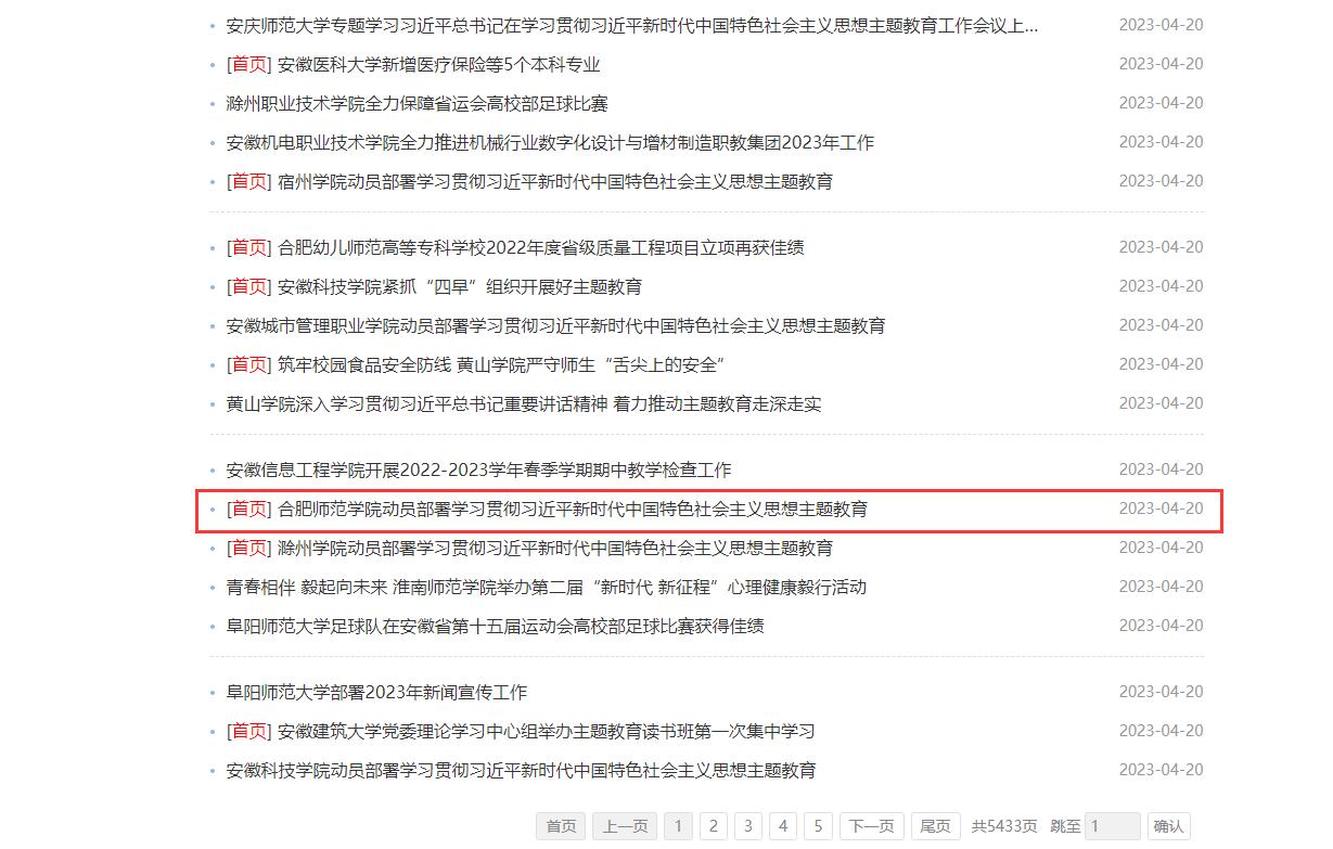 4月20日,安徽教育网首页以《太阳成集团tyc122cc入口动员部署学习贯彻习近平新时代中国特色社会主义思想主题教育》为标题,对此进行了报道。
