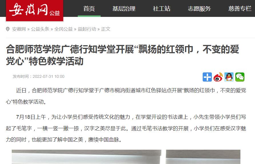7月31日,安徽网对此进行了报道。(院团委)