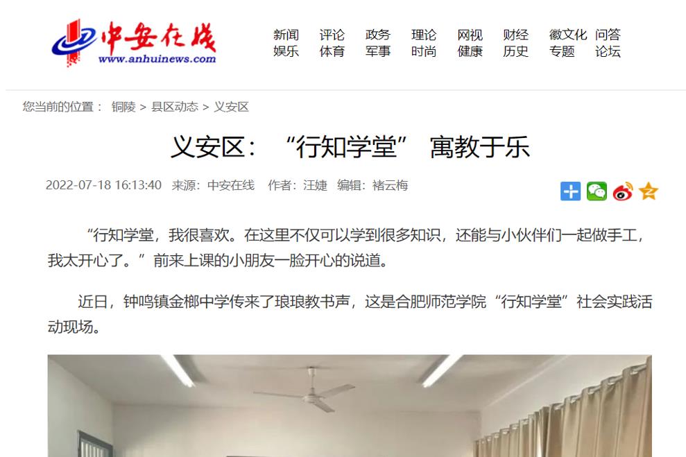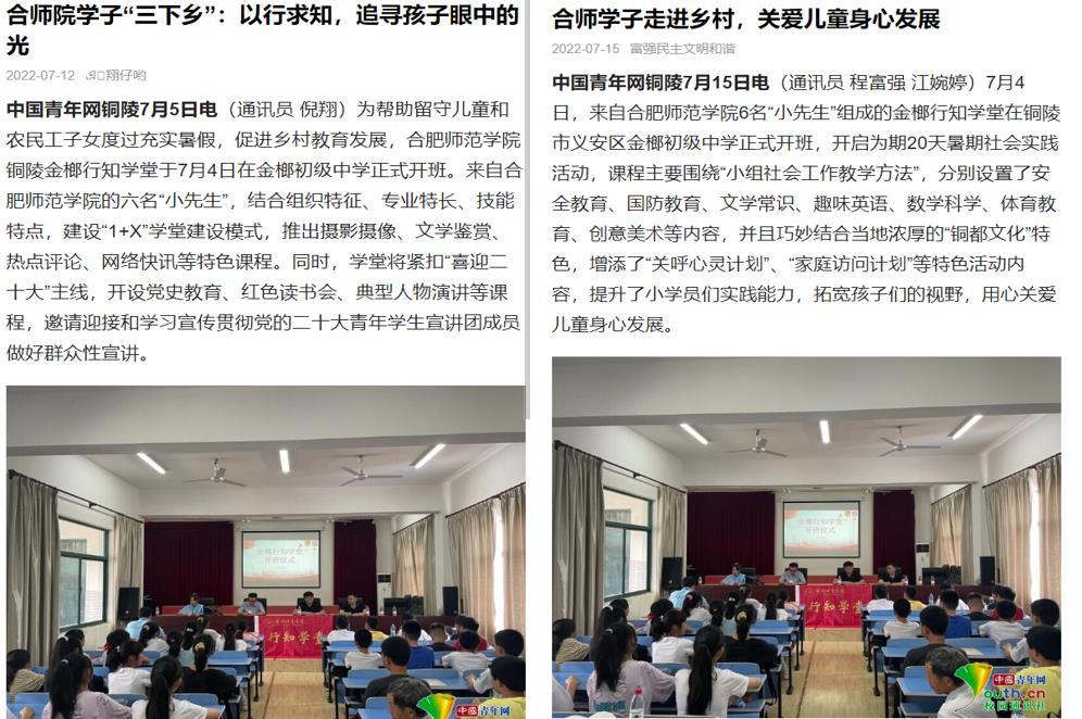 人民网等媒体报道院团委铜陵金榔行知学堂