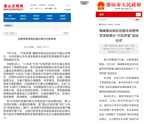 7月16日,潜山市人民政府网、潜山文明网对“潜山行知学堂”进行了报道。(数学与统计学院)