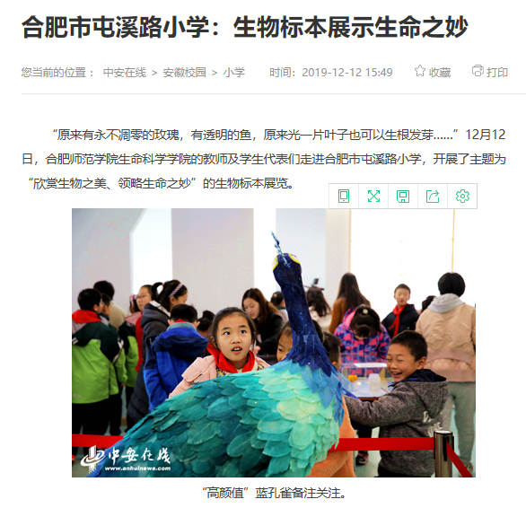 本次标本展得益于太阳成集团tyc122cc入口与包河区教体局的战略合作协议,由挂职副校长孙娴老师搭建了合作平台,活动得到了屯小领导班子及广大师生的大力支持,受到了屯小师生的热烈反响。