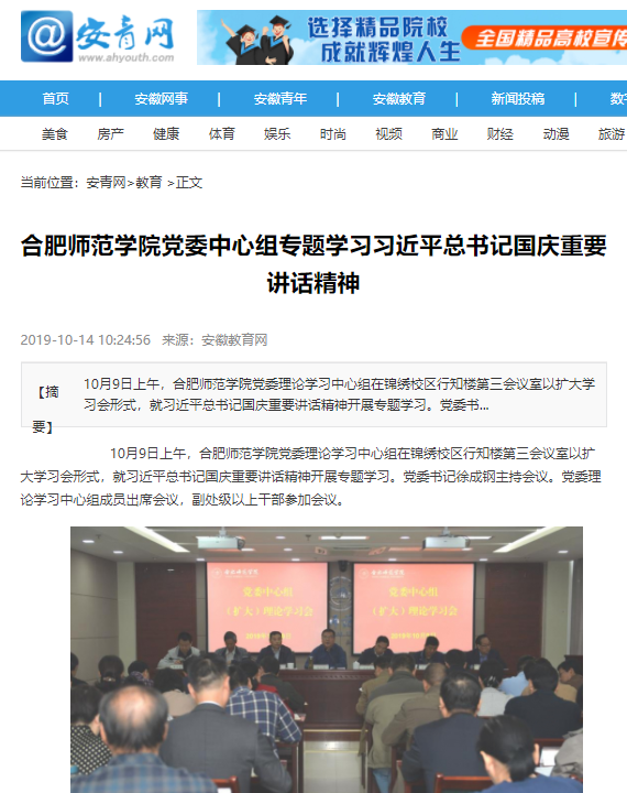 新闻链接:http://www.ahyouth.com/news/20191014/1402777.shtml