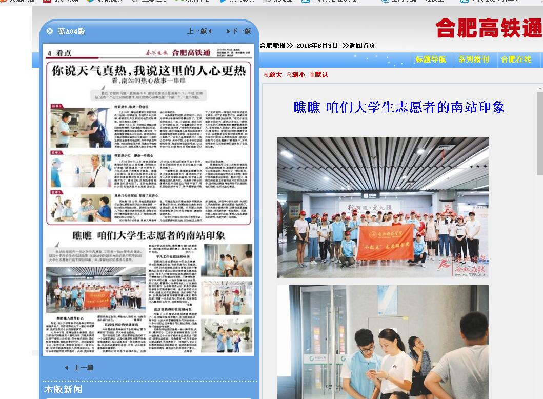 合肥晚报报道我校合肥南站志愿服务活动