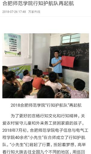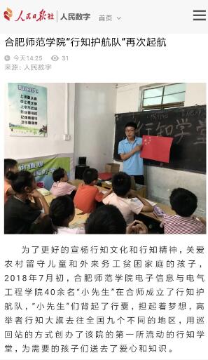 本网讯 7月25日,人民数字网、万家热线等媒体报道电子信息与电气工程学院“行知护航队”在全国九个不同的地区开展行知学堂活动。(电子信息与电气工程学院)